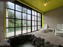 前擁私人花園露台,後有石壁流水觀景泡湯陽台,讓心情有頂級享受的山水雙人房,25坪超大空間以柔